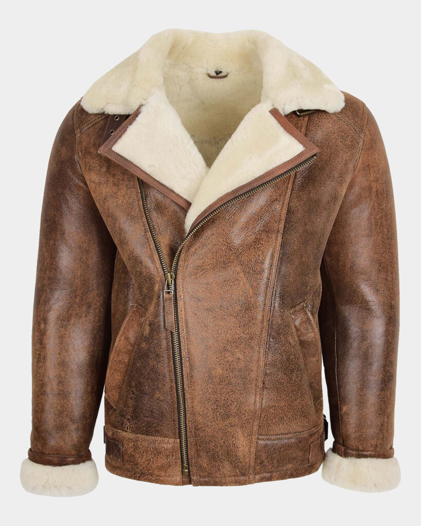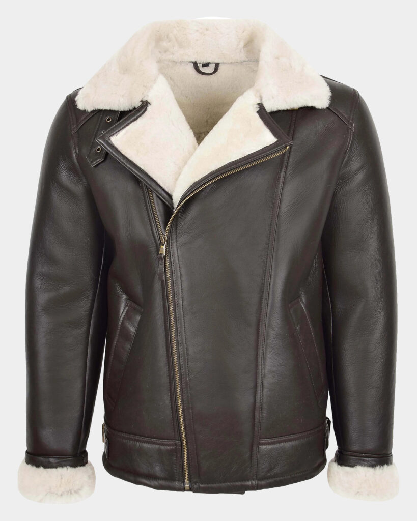 Mens Aviator Sheepskin Pilot Jacket Zenith Brown White