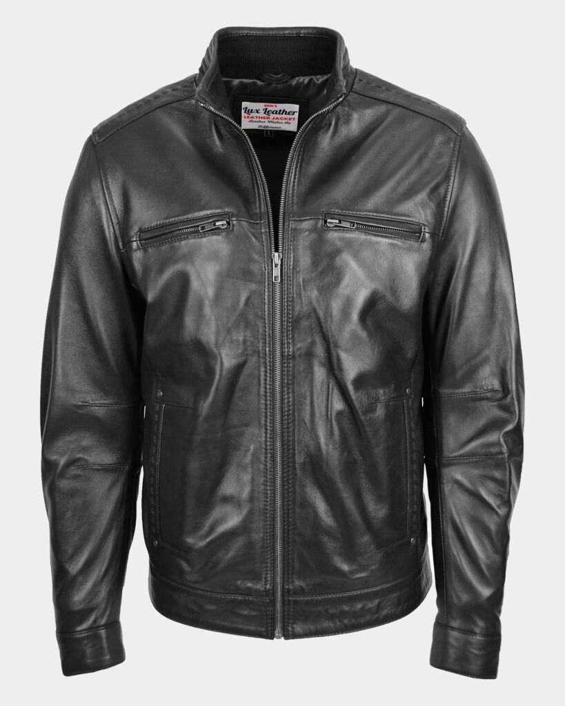 Men’s Standing Collar Leather Jacket Tony Nova Black