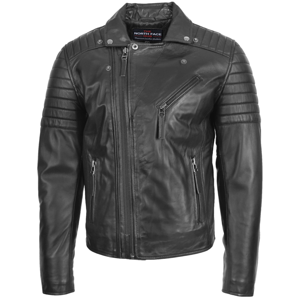 Men’s Phantom Black Quilted Shoulder Biker Leather Jacket