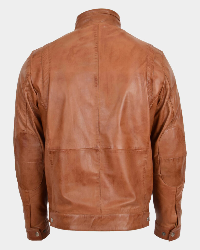 Men’s Standing Collar Leather Jacket Tony Dynamo Tan