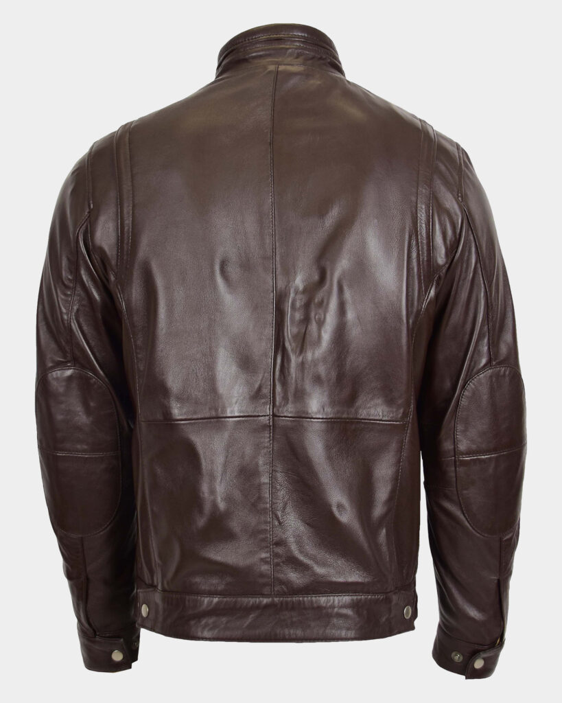 Men’s Standing Collar Leather Jacket Tony Zenith Brown